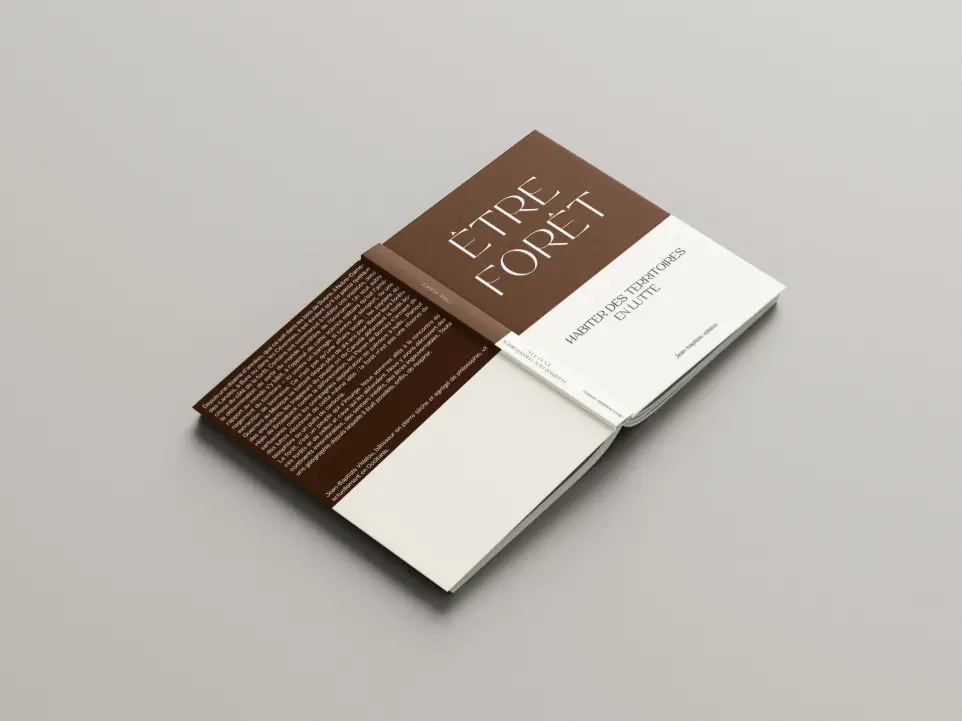 Mise en page éditoriale de l’essai Être forêts. Habiter des territoires en lutte (Éditions Zones). Le projet propose un mashup entre le texte engagé et les photographies de Cyrille Weiner extraites de Notre-Dame-des-Landes ou le métier de vivre (Éditions Loco).